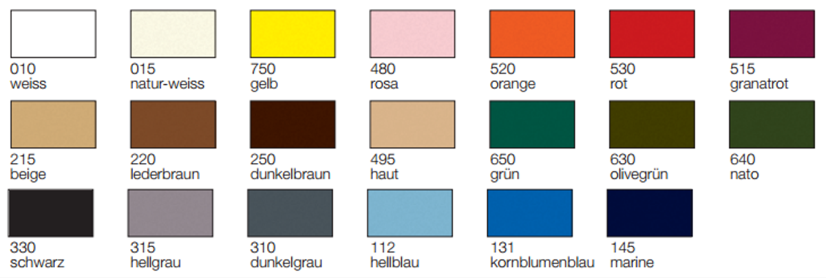 Fargene på oversikten gjelder borrelås krok/løkke
